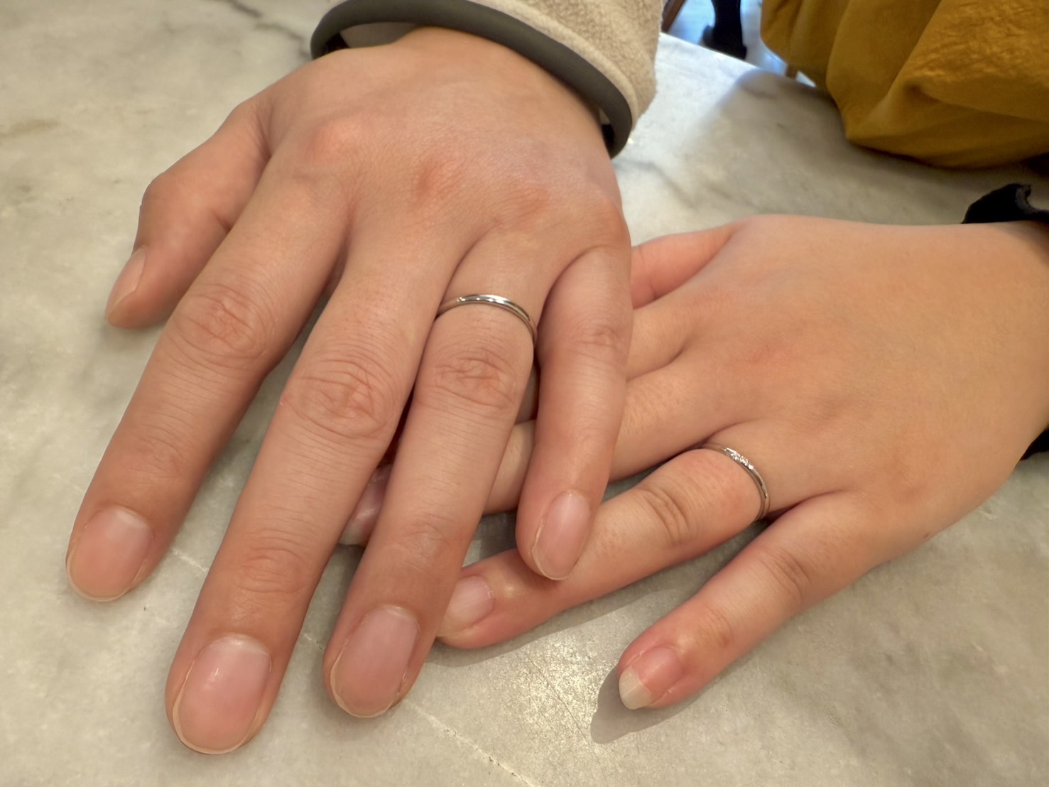 女性のリングは繊細で女性らしさがある可愛いデザインで、男性のリングもファッション性がある好きなリングに出会えました。