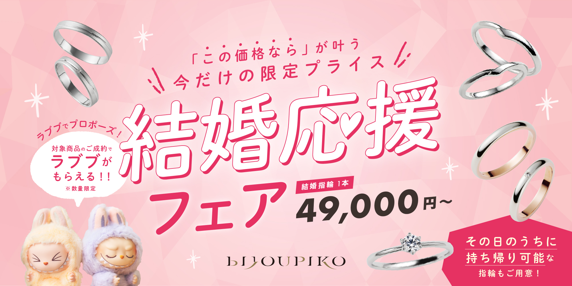 ビジュピコではサプライズプロポーズと彼女好みの婚約指輪、どちらも叶える「プロポーズパック」をご用意しております。